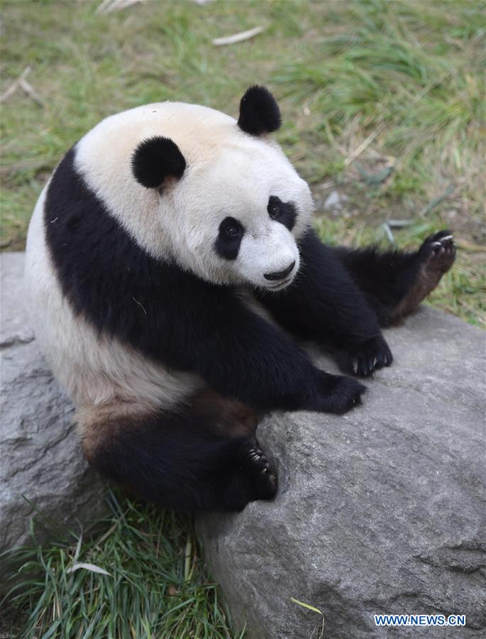 Photo taken on April 10, 2017 shows giant panda Xing Ya in the Wolong National Nature Reserve, southwest China's Sichuan Province. Two giant pandas Xing Ya and Wu Wen, left for the Netherlands on 15-year research mission. (Xinhua/Xue Yubin)