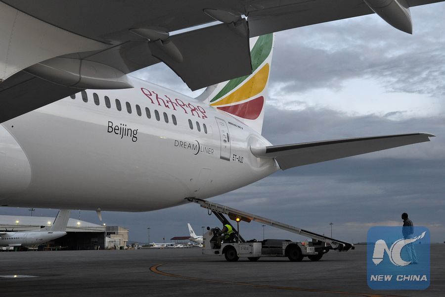 File photo taken on Oct. 27, 2017 shows the first Boeing 787-9 Dreamliner at Bole International Airport in Addis Ababa, capital of Ethiopia. (Xinhua)