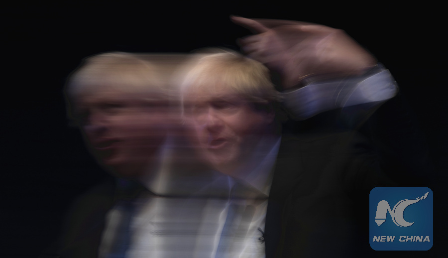 This file photo taken on Oct. 2, 2018 shows British former Foreign Secretary Boris Johnson speaks at a Conservative home fringe meeting on day three of the Conservatives Party annual conference 2018 in Birmingham, Britain. (Xinhua/Han Yan)