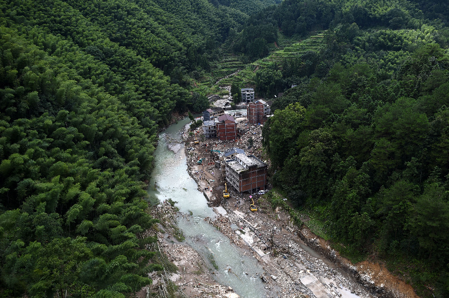 The site of the landslide on Aug. 11, 2019 in Shanzao Village of Yantan Township in Yongjia County, east China's Zhejiang Province. (Xinhua/Han Chuanhao)