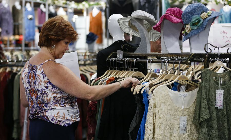 A woman browses clothes during the Offprice Show in Las Vegas, the United States, Aug. 11, 2019. (Xinhua/Li Ying)