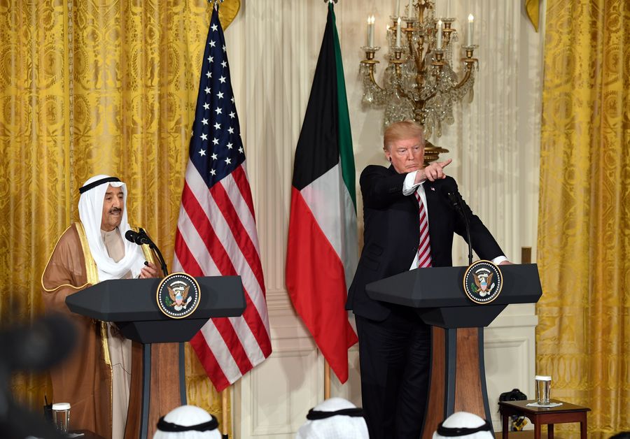 U.S. President Donald Trump (R) attends a joint press conference with visiting Kuwaiti Amir Sheikh Sabah Al-Ahmed Al-Jaber Al-Sabah at the White House in Washington D.C., the United States, on Sept. 7, 2017. (Xinhua/Yin Bogu)
