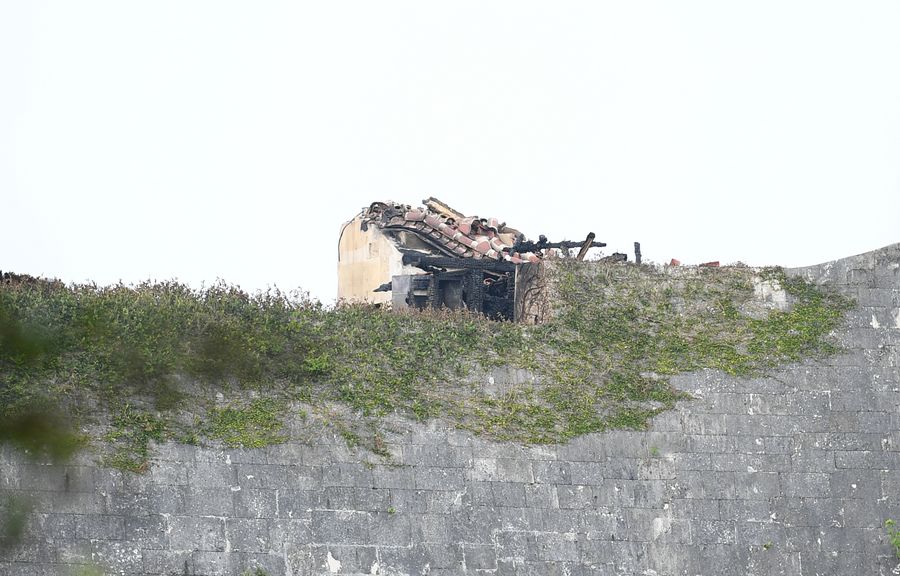 Photo taken on Oct. 31, 2019 shows the destroyed building of Shuri Castle in Naha, the prefectural capital of Okinawa, Japan. (Xinhua/Hua Yi)