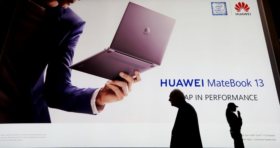 Visitors walk by an advertising screen of Huawei during the Consumer Electronics Show (CES) in Las Vegas, the United States, Jan. 8, 2019. (Xinhua/Li Ying)