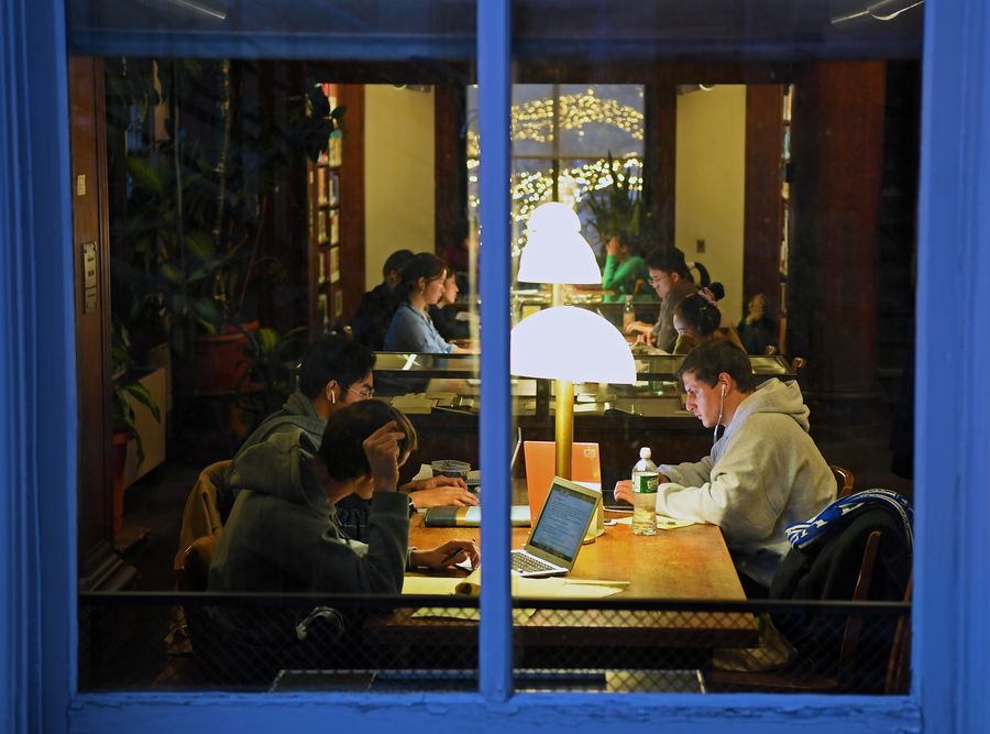 Students study at a library of Columbia University in New York, the United States, on Dec. 7, 2019. (Xinhua/Li Rui)