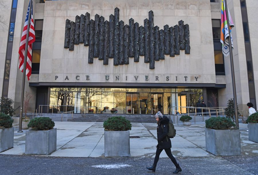 A student walks past a building of Pace University in New York, the United States, on Dec. 19, 2019. (Xinhua/Li Rui)