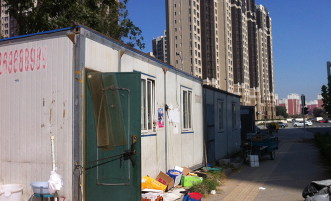由于小區(qū)周邊還沒有完全建成,周邊還有很多臨時(shí)修建的房子沒有拆除,很多車并沒有停進(jìn)停車場,小區(qū)前的車道沒有啟用,兩邊加了圍擋,變成了臨時(shí)停車場。