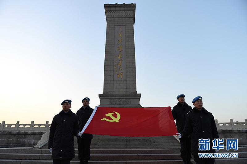 防暴隊隊員在人民英雄紀念碑前重溫入黨誓詞
