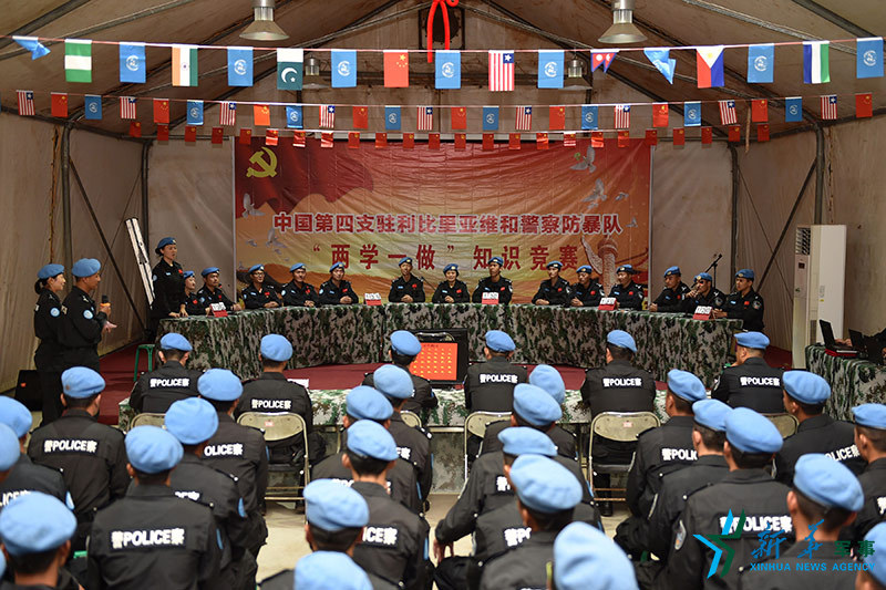 ????中國第四支駐利比里亞維和警察防暴隊日前舉行“兩學一做”學習教育知識競賽。