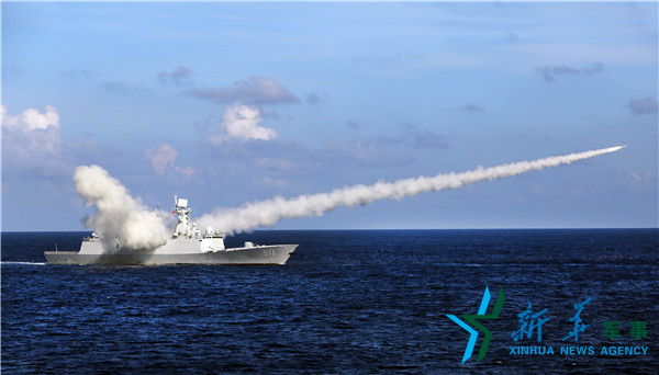 ??? 海軍在海南島至西沙附近海空域組織實兵實彈對抗演練,這是導(dǎo)彈護衛(wèi)艦運城艦發(fā)射反艦導(dǎo)彈(7月8日攝)。新華社記者查春明攝