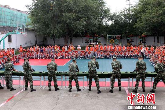 ????日前,新疆邊防總隊阿勒泰邊防支隊吉木乃機動中隊迎來了吉木乃縣直小學300余名小學生,他們與邊防官兵們一起共度“警營開放日”。當日,機動中隊的戰士們為同學們表演了槍支分解結合、擒敵拳術、倒功、疊軍被等科目,神秘的軍營生活讓孩子們能夠零距離的接觸,接受國防教育,增強國防觀念,在他們幼小的心里種上愛國愛軍的種子。