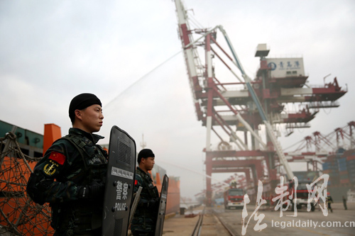 ????此次海上聯(lián)合反恐演練以阻止多名“涉恐分子”潛入港區(qū)及外輪企圖進(jìn)行恐怖活動為背景,幾名“恐怖分子”駕車意圖混入油港區(qū)實施破壞,被識破后仍試圖強行進(jìn)入。與此同時,前灣港集裝箱碼頭也發(fā)現(xiàn)幾名“涉恐分子”偽裝成船員,隨集裝箱貨輪進(jìn)入港區(qū)實施破壞行動,并在一艘即將離港的貨輪上劫持“人質(zhì)”,企圖逃離港區(qū)。面對如此復(fù)雜的局面,公安、邊檢、海關(guān)、國檢、港口等部門接到情報預(yù)警信息后,及時啟動海上聯(lián)合反恐處突應(yīng)急預(yù)案,聯(lián)合反恐指揮部及時下達(dá)指令,參加演練單位立即行動,邊檢利劍突擊隊隊員迅速登輪控制“涉恐分子”,消防部門架設(shè)水槍撲滅引燃物品,海關(guān)、海事巡邏艇在集裝箱船舶周邊海域鋪設(shè)防油污圍欄,并收繳走私涉恐物資。成功處置險情后,碼頭恢復(fù)生產(chǎn)作業(yè)。