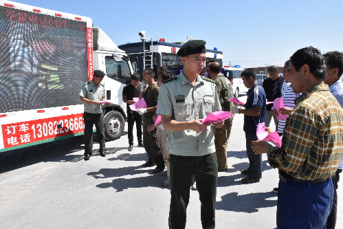 邊防官兵向漁民發放宣傳單宣講法律法規