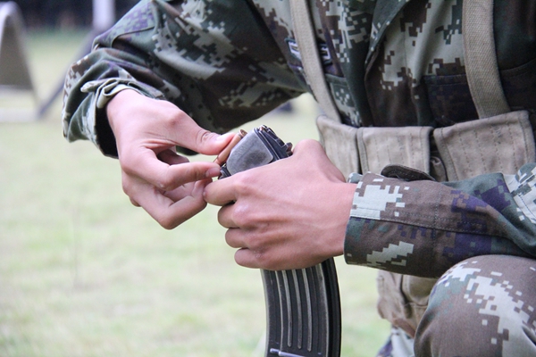 ????射擊場上,隨著指揮員一聲令下,新兵分批次領取實彈奔向射擊地線、臥姿裝彈、據(jù)槍瞄準,動作干脆利落。 “一號靶42環(huán),二號靶48環(huán)、三號靶……”報靶員通過對講機向記錄員如實報告。經(jīng)最后成績統(tǒng)計,這個新訓團廣西籍新兵唐美飛在考核中取得了步槍精度射擊5發(fā)子彈49環(huán)的最好成績,他興奮說道:“我打了49環(huán),主要是我們班長教的好,我會加倍努力,不辜負班長對我們的嚴格要求。”(陳敬龍)