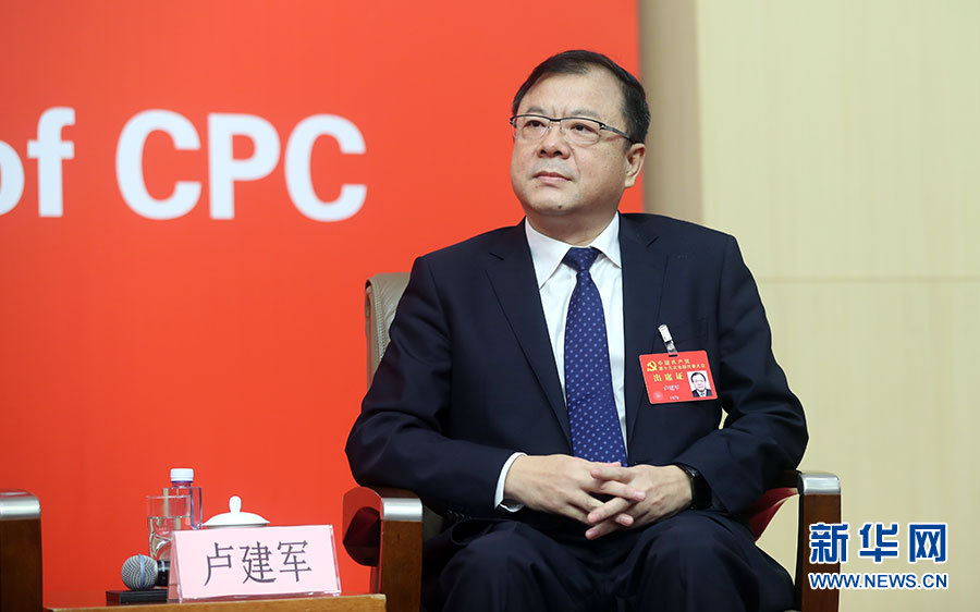 ??? 10月20日,十九大新聞中心舉辦集體采訪活動,主題為“實施創新驅動發展戰略”。圖為陜西省委科技工委書記、省科技廳廳長盧建軍。新華網 郝廣鵬攝