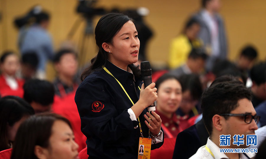 ??? 10月20日,十九大新聞中心舉辦集體采訪活動,主題為“實施創新驅動發展戰略”。圖為人民網記者提問。新華網 郝廣鵬攝