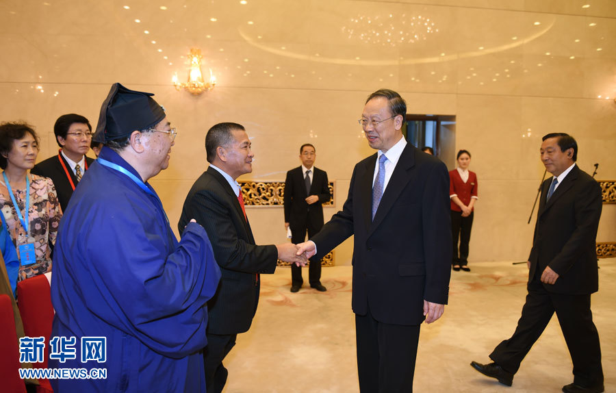 ?? 9月4日,紀念中國人民抗日戰(zhàn)爭暨世界反法西斯戰(zhàn)爭勝利70周年宗教界和平祈禱活動在北京舉行。這是中共中央書記處書記、全國政協(xié)副主席杜青林,全國政協(xié)副主席齊續(xù)春會見參加和平祈禱活動的宗教界代表。新華社記者 張領(lǐng) 攝