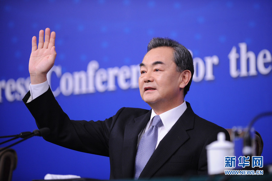 ?? 十二屆全國人大三次會議新聞中心于3月8日(星期日)10時在梅地亞中心多功能廳舉行記者會,邀請外交部部長王毅就中國的外交政策和對外關(guān)系相關(guān)問題回答中外記者提問。圖為外交部部長王毅向記者揮手致意。新華網(wǎng)/中國政府網(wǎng) 翟子赫 攝