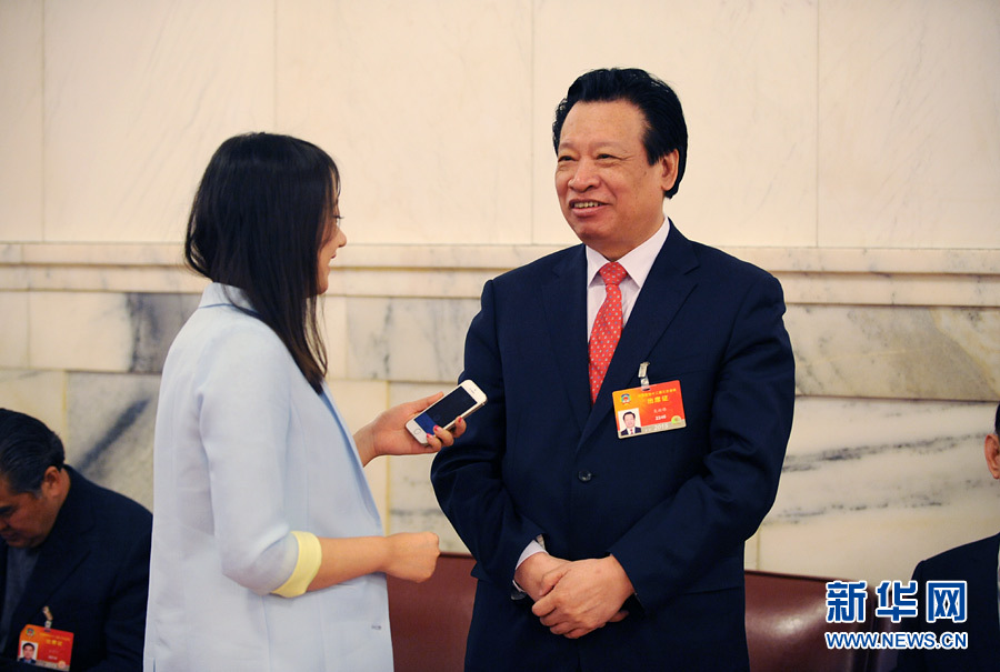 ???? 2015年3月11日,全國政協(xié)十二屆三次會議舉行第四次全體會議,多名政協(xié)委員就有關(guān)議題作大會發(fā)言。圖為,全國政協(xié)經(jīng)濟(jì)委員會副主任、國家能源局原局長吳新雄接受新華網(wǎng)記者采訪。新華網(wǎng) 翟子赫攝