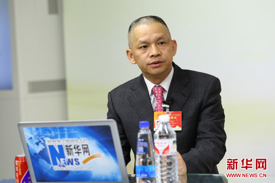 2015年3月13日,全國人大代表、湖南科力遠新能源股份有限公司董事長鐘發(fā)平做客新華會客廳。圖為訪談現(xiàn)場。新華網(wǎng) 李江 攝