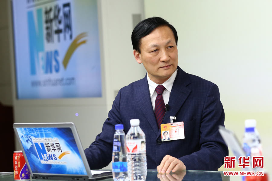 2015年3月13日,全國人大代表,北京大學第三醫院骨科主任及脊柱外科研究所所長劉忠軍做客新華會客廳。圖為劉忠軍解答主持人問題。新華網 李江 攝