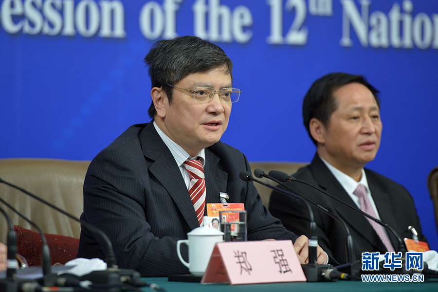 ????3月13日上午10時,十二屆全國人大三次會議新聞中心邀請四川大學校長謝和平、江蘇省教育廳廳長沈健、廣東省教育廳廳長羅偉其、海南大學校長李建保、貴州大學校長鄭強就完善高等教育治理結構的相關問題回答中外記者提問。圖為貴州大學校長鄭強答記者問。新華網/中國政府網 郭小天 攝