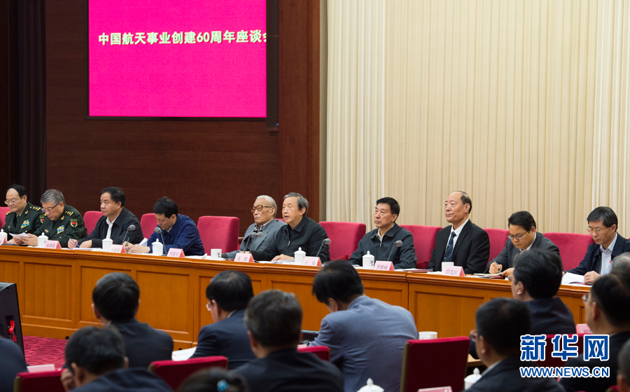 ????10月12日,中國(guó)航天事業(yè)創(chuàng)建60周年座談會(huì)在北京召開(kāi)。中共中央政治局委員、國(guó)務(wù)院副總理馬凱出席座談會(huì)并講話,國(guó)務(wù)委員王勇出席座談會(huì)。新華社記者謝環(huán)馳攝