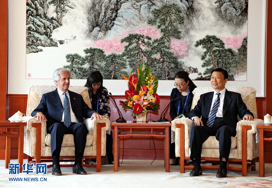 10月14日,中國國家副主席李源潮在河北唐山會見參加第十屆中國-拉美企業(yè)家高峰會的烏拉圭總統(tǒng)塔瓦雷·巴斯克斯。 新華社記者楊世堯攝