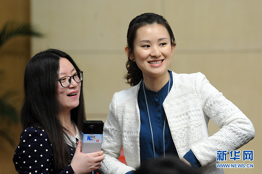 十二屆全國人大四次會議新聞中心于3月8日(星期二)10時在梅地亞中心多功能廳舉行記者會,邀請外交部部長王毅就“中國的外交政策和對外關系”的相關問題回答中外記者的提問。圖為發(fā)布會現(xiàn)場的美女記者。新華網(wǎng)/中國政府網(wǎng)記者 陳競超攝