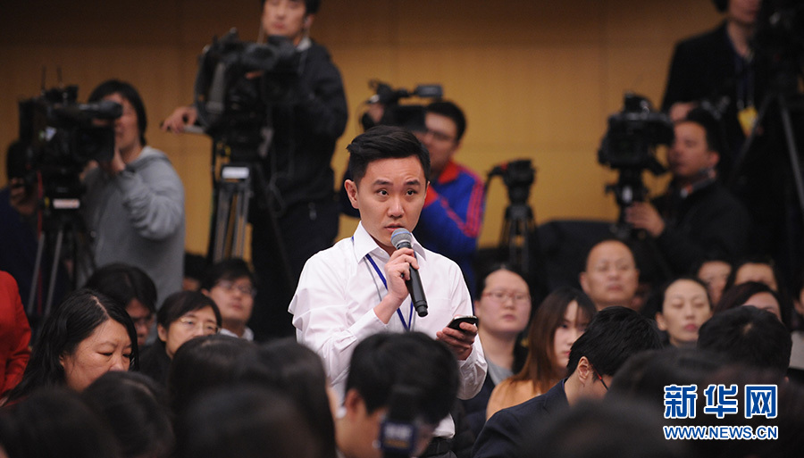 ?????十二屆全國人大四次會議新聞中心于3月12日(星期六)14時30分在梅地亞中心多功能廳舉行記者會,邀請國務院國有資產監督管理委員會主任肖亞慶、副主任張喜武、副主任黃丹華和副秘書長、新聞發言人彭華崗就“國企改革”的相關問題回答中外記者的提問。圖為彭博新聞社記者提問。新華網/中國政府網 陳杰 攝