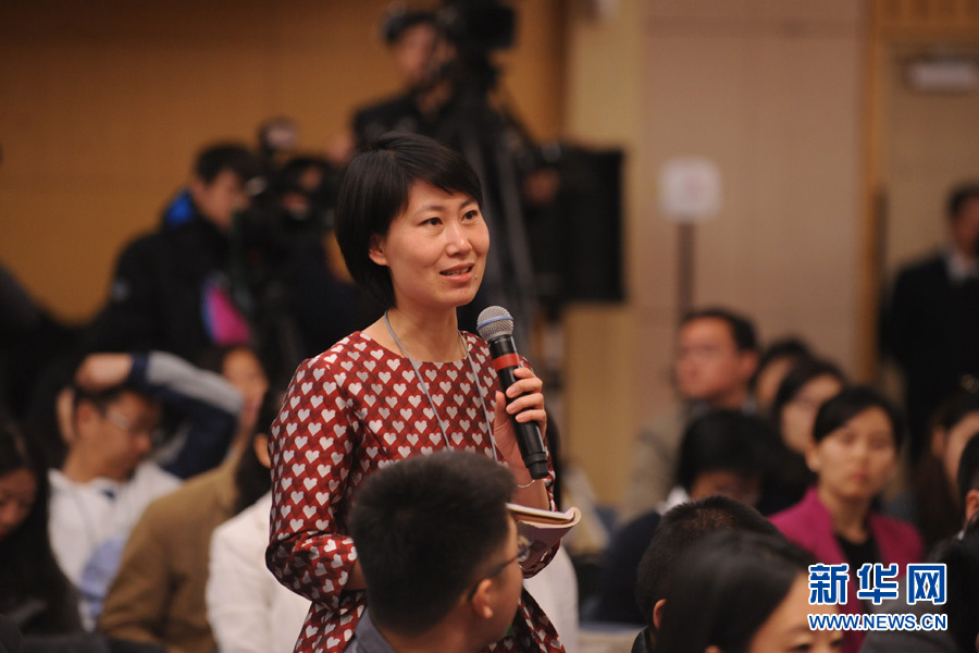 十二屆全國人大四次會議新聞中心于3月14日(星期一)10時在梅地亞中心多功能廳舉行記者會,邀請交通運輸部部長楊傳堂、交通運輸部運輸服務司司長劉小明、北京交通發展研究中心主任郭繼孚就“深化出租汽車改革與發展”的相關問題回答中外記者的提問。圖為中央人民廣播電臺、央廣網記者提問。新華網/中國政府網 陳杰 攝