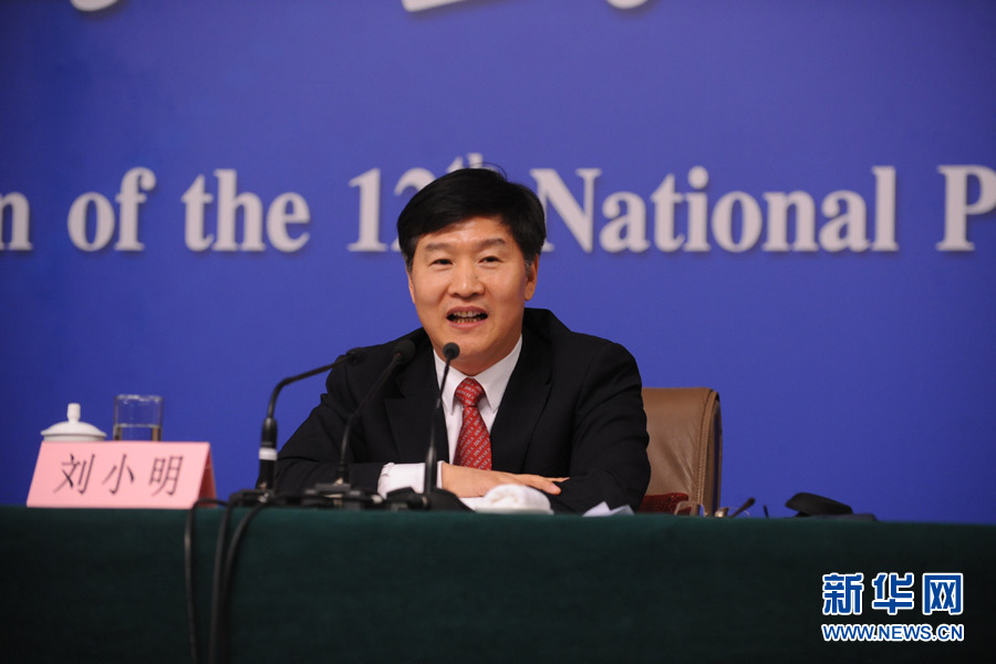 十二屆全國(guó)人大四次會(huì)議新聞中心于3月14日(星期一)10時(shí)在梅地亞中心多功能廳舉行記者會(huì),邀請(qǐng)交通運(yùn)輸部部長(zhǎng)楊傳堂、交通運(yùn)輸部運(yùn)輸服務(wù)司司長(zhǎng)劉小明、北京交通發(fā)展研究中心主任郭繼孚就“深化出租汽車(chē)改革與發(fā)展”的相關(guān)問(wèn)題回答中外記者的提問(wèn)。圖為交通運(yùn)輸部運(yùn)輸服務(wù)司司長(zhǎng)劉小明答記者問(wèn)。新華網(wǎng)/中國(guó)政府網(wǎng) 陳杰 攝