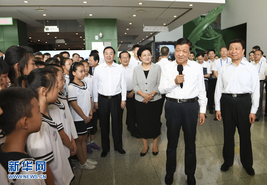 9月17日,中共中央政治局常委、中央書記處書記劉云山和劉延?xùn)|、劉奇葆、李源潮、萬鋼等領(lǐng)導(dǎo)同志來到北京中國科技館,參加全國科普日北京主場活動。新華社記者 高潔 攝