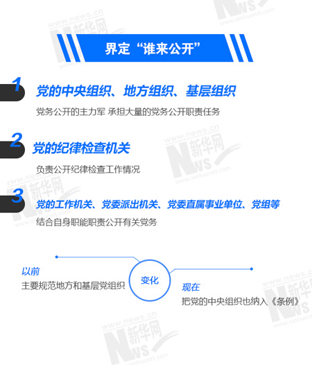 《條例》明確規定了公開范圍,主要包括向社會公開,在全黨公開,在本地區、本部門、本單位公開,對特定黨的組織、黨員和群眾公開。并規定了黨的組織應當根據《條例》規定的黨務公開內容和范圍,編制黨務公開目錄,并根據職責任務要求動態調整。