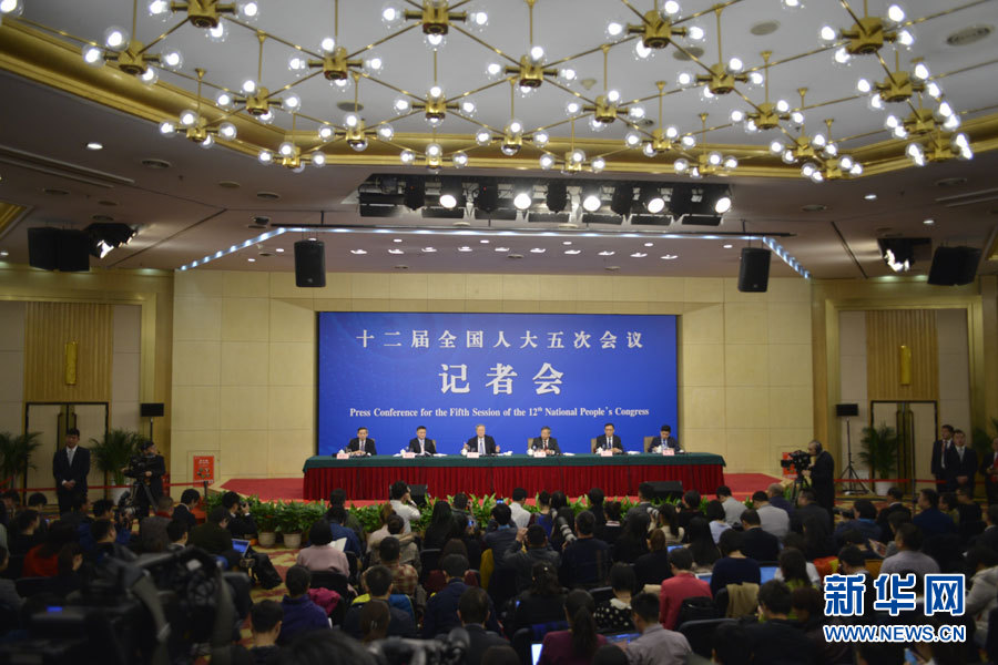 3月10日,十二屆全國人大五次會議新聞中心舉行記者會,邀請中國人民銀行行長周小川、副行長易綱、副行長兼國家外匯管理局局長潘功勝、副行長范一飛就“金融改革與發(fā)展”的相關問題回答中外記者的提問。圖為記者會現(xiàn)場。新華網(wǎng)/中國政府網(wǎng) 孫韜 攝