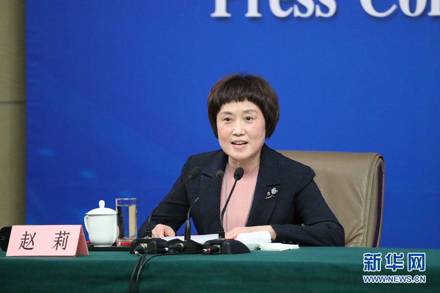3月10日,十二屆全國人大五次會議新聞中心舉行記者會,邀請國家工商行政管理總局局長張茅就“深化商事制度改革”的相關問題回答中外記者的提問。圖為記者會主持人趙莉。新華網/中國政府網?孫韜 攝