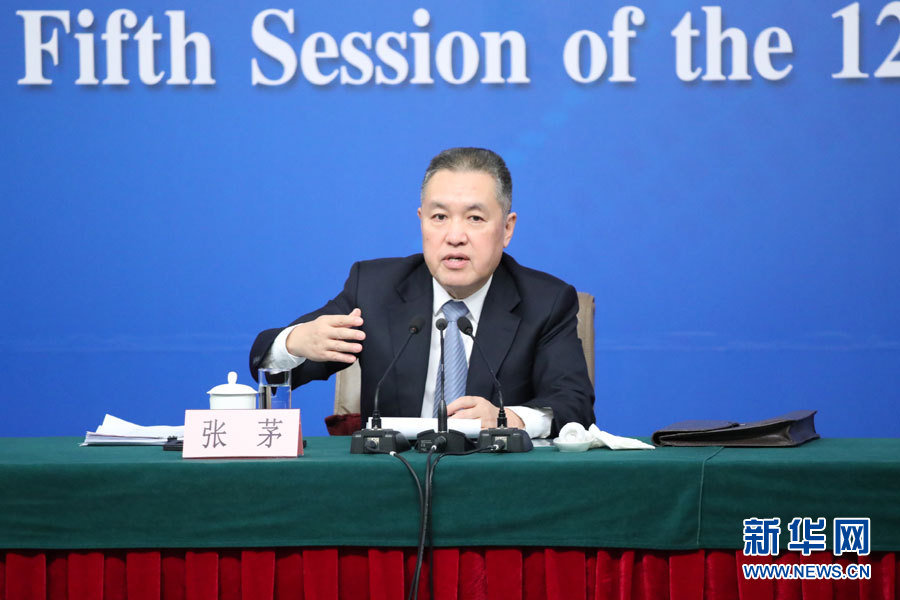3月10日,十二屆全國人大五次會議新聞中心舉行記者會,邀請國家工商行政管理總局局長張茅就“深化商事制度改革”的相關問題回答中外記者的提問。圖為張茅回答記者提問。新華網/中國政府網 孫韜 攝?