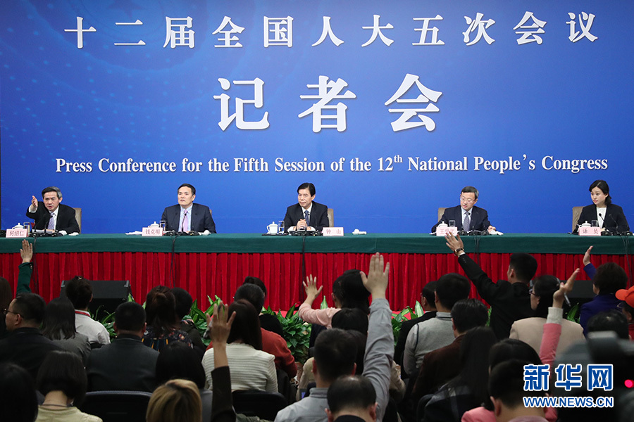 3月11日,十二屆全國人大五次會議新聞中心舉行記者會,主題是“改革開放調結構 創(chuàng)新驅動促發(fā)展”,商務部部長鐘山、副部長王受文、副部長錢克明出席并回答中外記者的提問。圖為記者會現(xiàn)場。 新華網/中國政府網 傅義洲 攝