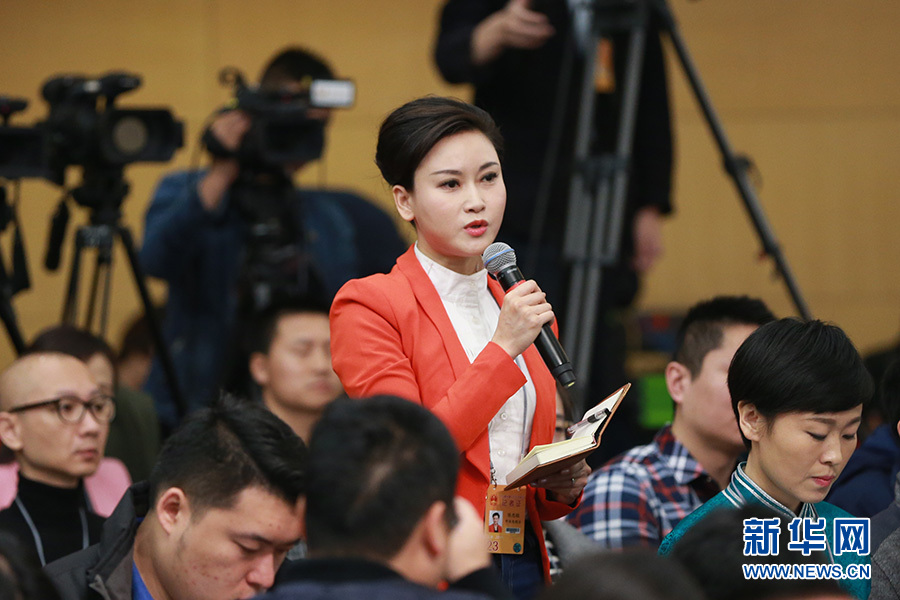 3月11日,十二屆全國人大五次會議新聞中心舉行記者會,邀請工業和信息化部部長苗圩、副部長辛國斌和總工程師、新聞發言人張峰就“推進實施‘中國制造2025’”的相關問題回答中外記者的提問。圖為中央電視臺記者提問。新華網/中國政府網 傅義洲 攝