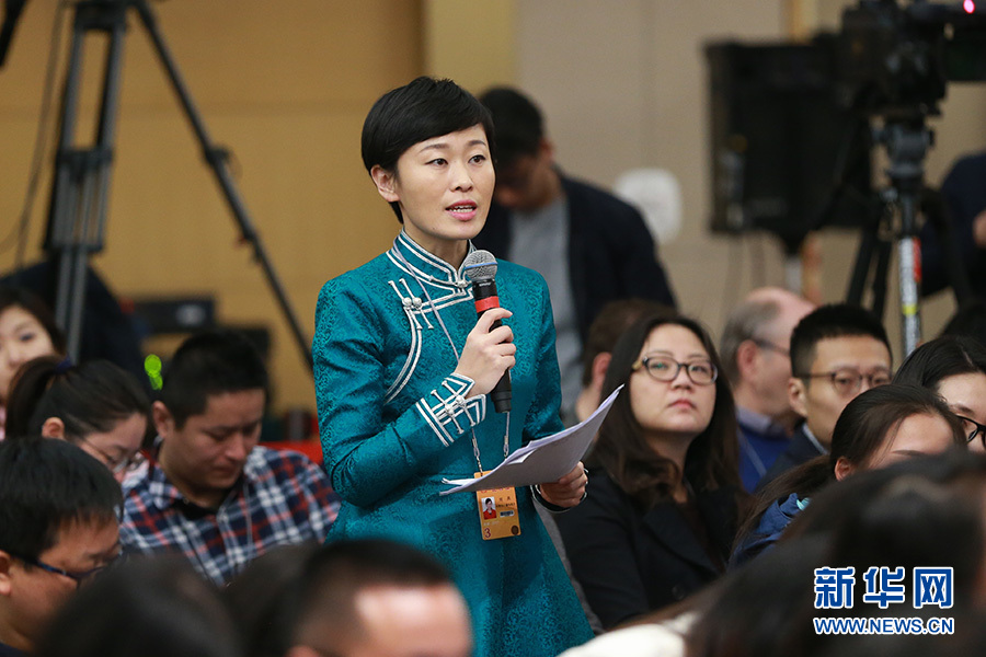 3月11日,十二屆全國人大五次會議新聞中心舉行記者會,邀請工業(yè)和信息化部部長苗圩、副部長辛國斌和總工程師、新聞發(fā)言人張峰就“推進(jìn)實施‘中國制造2025’”的相關(guān)問題回答中外記者的提問。圖為內(nèi)蒙古廣播電視臺記者提問。新華網(wǎng)/中國政府網(wǎng) 傅義洲 攝