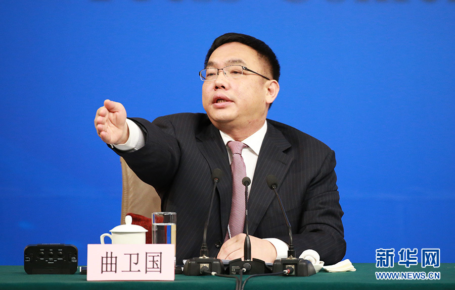 3月11日,十二屆全國(guó)人大五次會(huì)議新聞中心舉行記者會(huì),邀請(qǐng)國(guó)家衛(wèi)生計(jì)生委主任李斌、副主任王培安和副主任、國(guó)務(wù)院醫(yī)改辦主任王賀勝就“‘十三五’開(kāi)局之年衛(wèi)生計(jì)生改革發(fā)展”的相關(guān)問(wèn)題回答中外記者的提問(wèn)。圖為記者會(huì)主持人曲衛(wèi)國(guó)。新華網(wǎng)/中國(guó)政府網(wǎng)?翟子赫 攝?