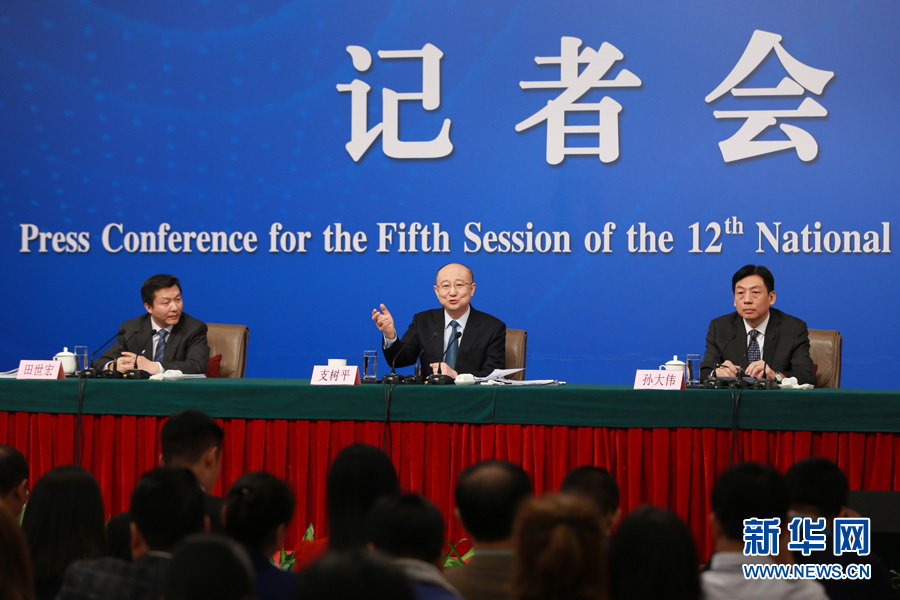 3月14日,十二屆全國人大五次會議新聞中心舉行記者會,邀請國家質檢總局局長支樹平、副局長兼國家認證認可監督管理委員會主任孫大偉、國家標準化管理委員會主任田世宏就“質量提升”的相關問題回答中外記者的提問。圖為記者會現場。新華網/中國政府網 傅義洲 攝?