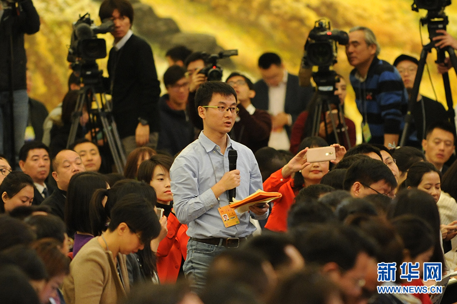 3月15日上午,國務院總理李克強在人民大會堂三樓金色大廳會見采訪十二屆全國人大五次會議的中外記者并回答記者提出的問題。圖為深圳特區報記者提問。新華網/中國政府網 翟子赫 攝