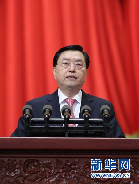 3月8日,全國人大常委會委員長張德江向十二屆全國人大五次會議作《全國人民代表大會常務委員會工作報告》。 新華社記者 謝環馳攝