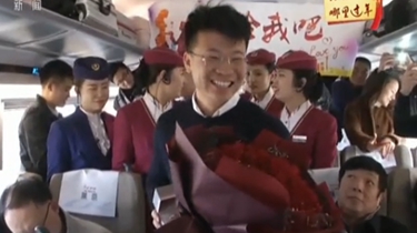 資料圖:在一列動車組列車上,上演一場由高鐵乘務員自編自演的新年“文化大餐”。丁顗 攝