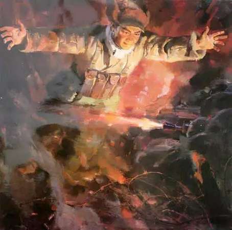 1952年的上甘嶺,一位名叫黃繼光的戰士在烈焰和硝煙蔽日的日子里,一筆一劃地寫下:“男現在為了祖國人民需要站在光榮戰斗最前面,為了全祖國家中人等幸福日子,男有決心在戰斗中為人民服務,不立功不下戰場?!焙髞淼哪骋惶欤麖堥_雙臂,迎著狂噴火舌的射孔一躍而起。檔案上記載著,黃繼光是位來自四川的農民。