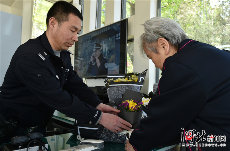 4月6日,一位市民來到石家莊市呂建江綜合警務服務站,在呂建江同志生前工作過的地方送上一束鮮花寄托哀思。 記者趙海江攝