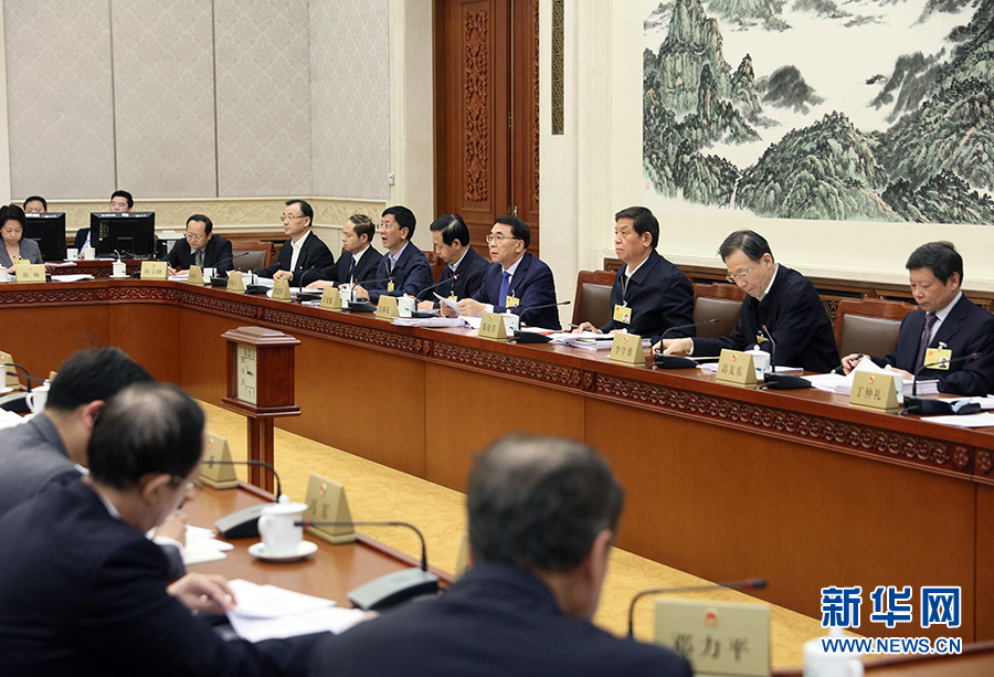 4月25日,十三屆全國人大常委會第二次會議舉行分組會議,審議人民陪審員法草案、英雄烈士保護(hù)法草案等。栗戰(zhàn)書委員長參加審議。 新華社記者劉衛(wèi)兵 攝