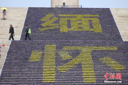 資料圖:3月26日,南京雨花臺烈士陵園內的烈士紀念碑前布置了由數(shù)萬盆鮮花組成的“緬懷”花壇,以此表達對革命英烈的紀念之情。 中新社記者 泱波 攝