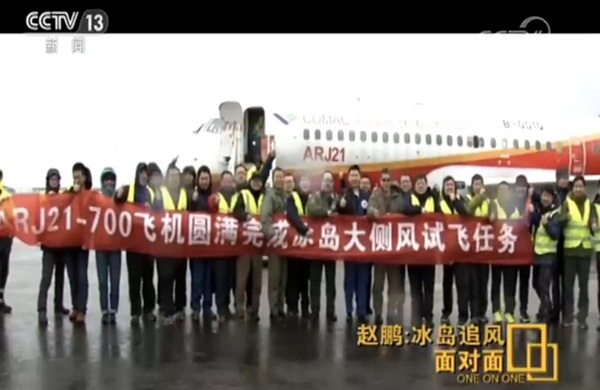 2018年2月27日,中國(guó)自主研制的ARJ21-700飛機(jī)從西安起飛,前往冰島凱夫拉維克國(guó)際機(jī)場(chǎng)進(jìn)行大側(cè)風(fēng)試驗(yàn)。4月8日下午3點(diǎn),在“離家”41天、往返2萬多公里航程后,ARJ21-700平穩(wěn)降落在西安閻良機(jī)場(chǎng),為冰島大側(cè)風(fēng)試飛之旅畫上圓滿句號(hào)。